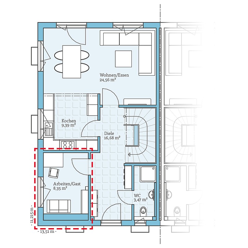 Entwürfe wie unser Hanse Haus Doppelhaus 35-124 nutzen das Grundstück optimal und ermöglichen so auch in teuren Wohngegenden bezahlbaren Wohnraum.