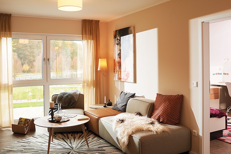 Bei manchen Baugrundstücken kann es von Vorteil sein, den Hauseingang nicht wie üblich an der Traufseite des Hauses, sondern wie beim Hanse Haus Doppelhaus 45-123 an der Giebelseite zu platzieren. So können Zufahrten, die Platzierung und die Ausrichtung des Hauses je nach Lage des Grundstücks unter Umständen besser geplant werden.