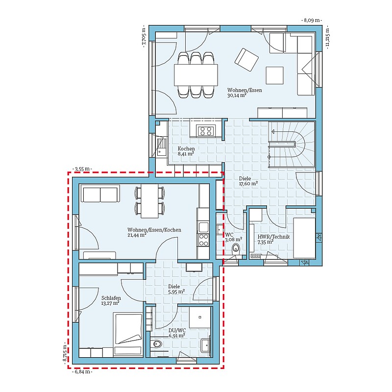 In den Hausentwurf Variant 25-150 haben wir eine besondere Einliegerwohnung integriert.