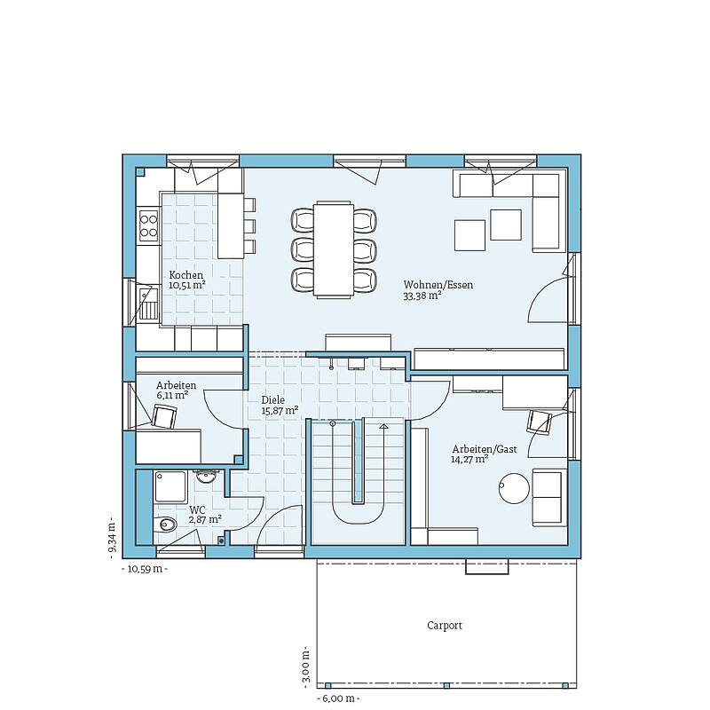 Wer sein Zuhause mit einer zusätzlichen Einliegerwohnung planen möchte und dennoch viel Wert auf Privatsphäre legt, für den ist diese Planungsalternative des Variant 25-166 optimal geeignet.