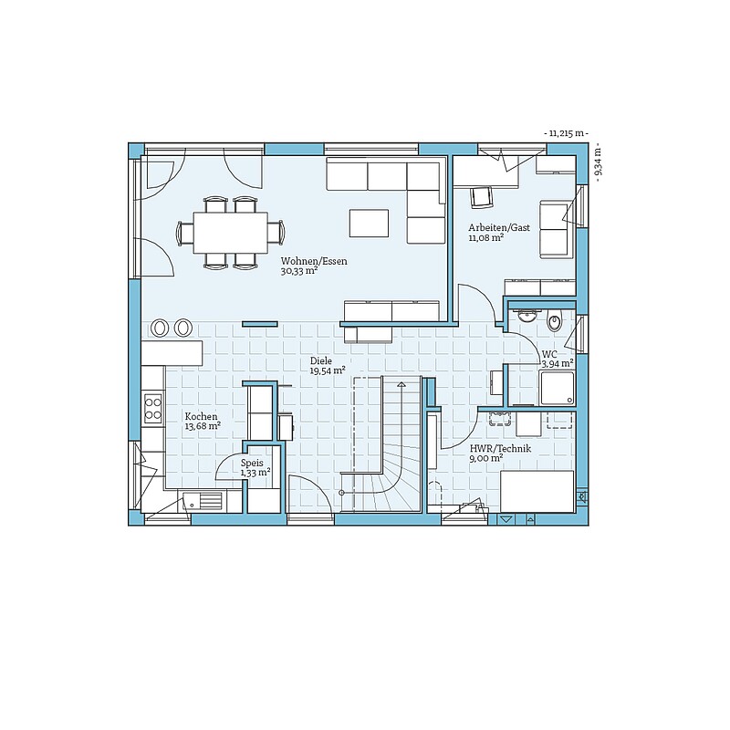 Wie bei all unseren Häusern können Sie auch hier den Grundriss nach Ihren Vorstellungen vergrössern, verkleinern, Raumaufteilungen verändern, Fenster umplanen und dem Haus mit unzähligen Farbkombinationen bei der Fassaden- und Raumgestaltung einen unverwechselbaren Look verleihen.