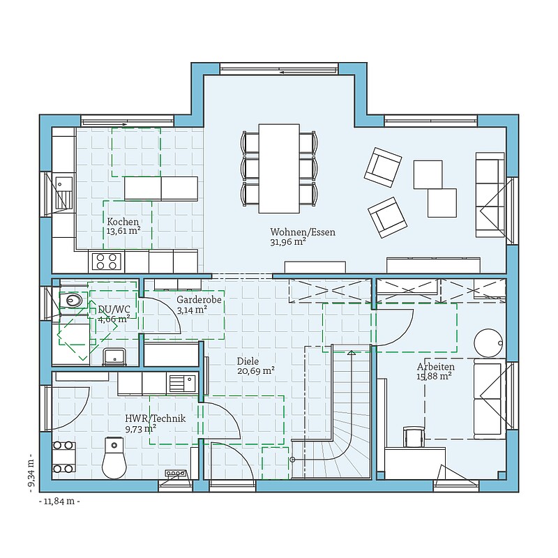 Mit 184 m² Grundfläche bietet auch dieses Haus aus der Hanse Haus Serie Variant grosszügigen Raum für die ganze Familie.