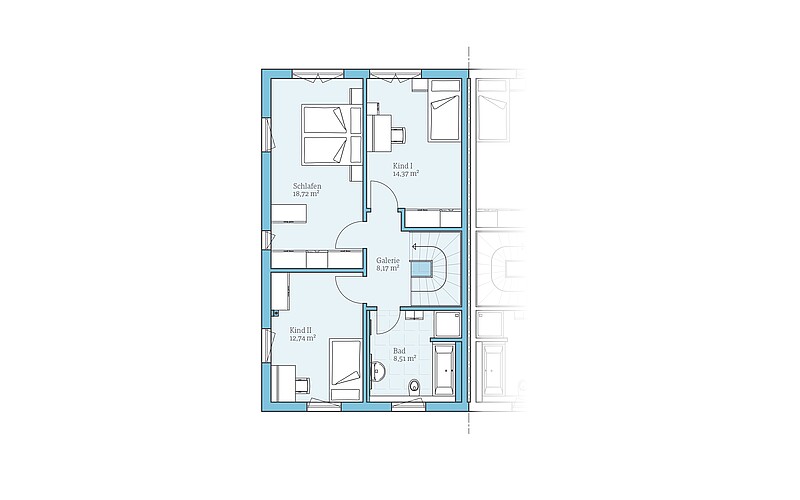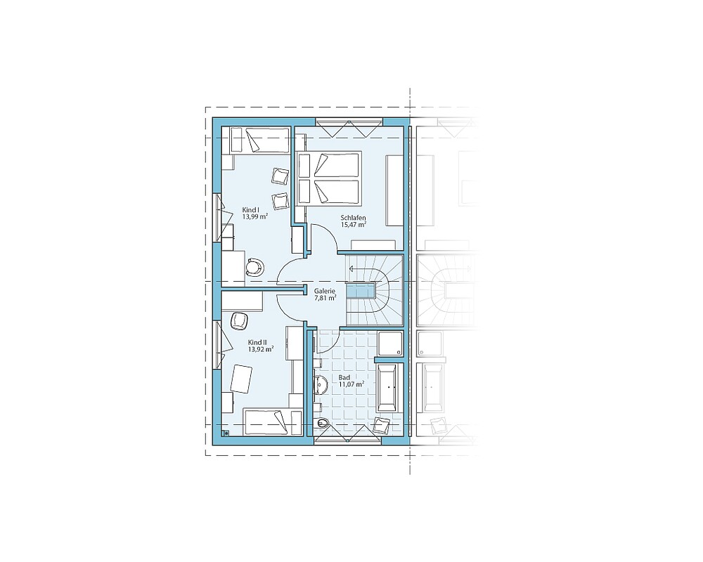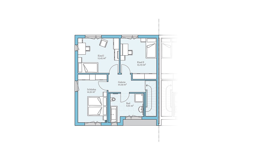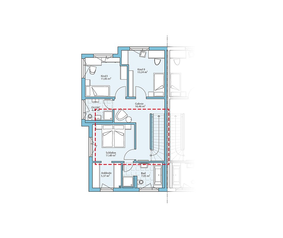 - Um Problemen mit dem Schallschutz aus dem Weg zu gehen, sollten die Schlafzimmer nicht an der Trennwand geplant werden.