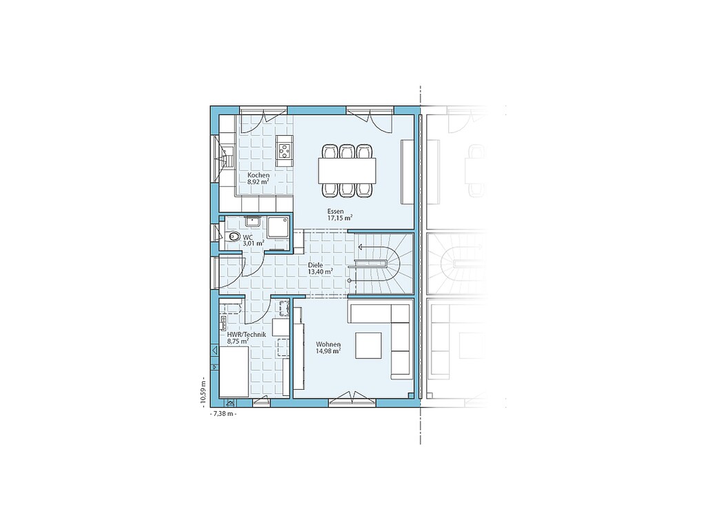 - Je breiter das Haus, desto kleiner ist die fensterlose Wand zum Nachbarn und desto heller können Sie Ihren Lebensraum gestalten.