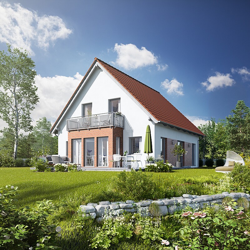 Als Beispiel, welche Planungsoptionen wie bei Hanse Haus bereits für Sie vorüberlegt haben, können Sie sich unseren Planungsvorschlag Variant 35-160 ansehen, ein Haus mit Satteldach, bei dem wir als Planungsoption eine Garage und einen ausgelagerten Technikraum zeigen.