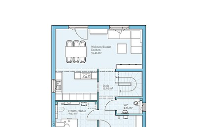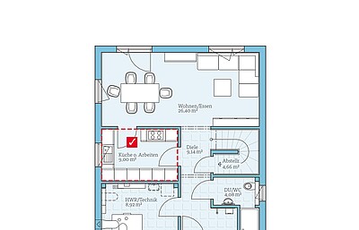 Offene Küche oder geschlossene Küche? Oder lieber Platz schaffen für ein Gäste- und Arbeitszimmer? Das Erdgeschoss unserer CONCEPT-Line 124 lässt sich flexibel nach Ihren Wünschen planen.