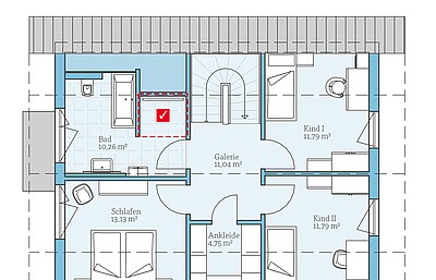 Standard-Badezimmer im DachgeschossWir möchten das Badezimmer so planen, wie es im Standard-Grundriss vorgesehen ist. -