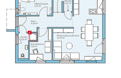 Standard-Gäste-WCWir möchten das Gäste-WC im Erdgeschoss so planen, wie es im Standard-Grundriss vorgesehen ist (ohne Dusche). -