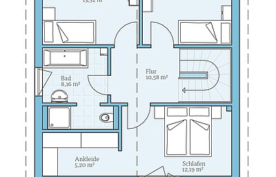 Vergrössertes Bad im ObergeschossWir möchten das Bad auf ca. 12,5 m² vergrössern. -