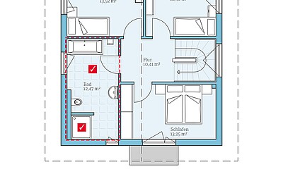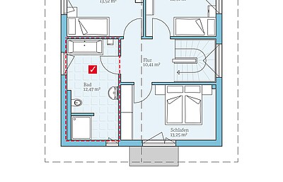 Standard-Badezimmer im ObergeschossWir möchten das Badezimmer so planen, wie es im Standard-Grundriss vorgesehen ist. -