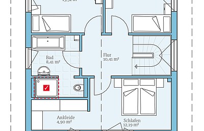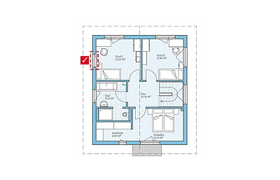 Bei unserer Villa 124 aus der CONCEPT-Line haben Sie die Möglichkeit, die Ankleide zu einer Schranknische umzuplanen und das Bad zu vergrössern. Und wie wäre es mit einer besonders geräumigen Dusche?