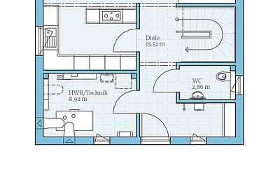 Standard-Gäste-WCWir möchten das Gäste-WC im Erdgeschoss so planen, wie es im Standard-Grundriss vorgesehen ist (ohne Dusche). -