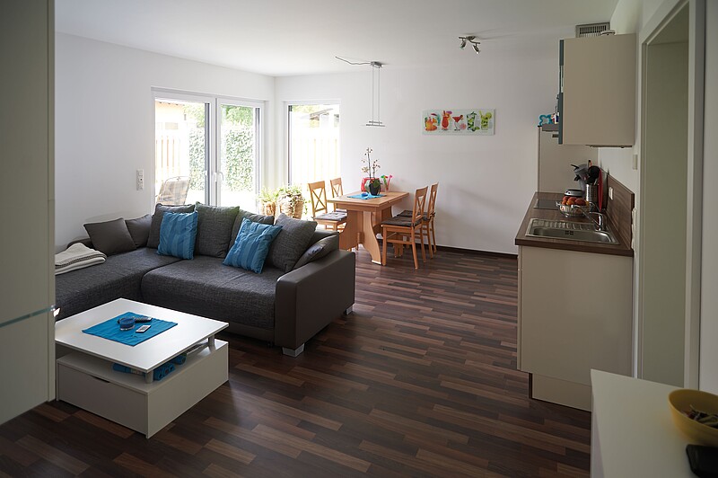 Da ist die helle, seniorenfreundlich ausgestattete Zweizimmerwohnung (schwellenfrei, breite Türen, Bad mit bodengleicher Dusche) plus Süd-West-Terrasse.