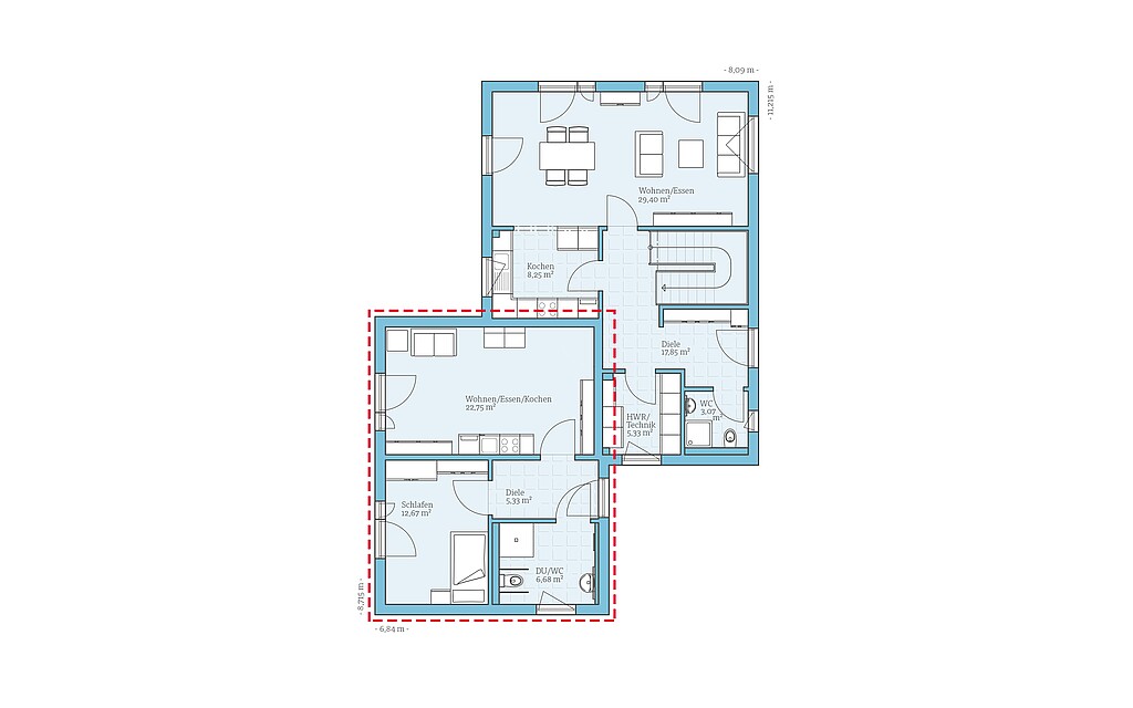 Die Grundrisse der beiden Wohneinheiten können unabhängig voneinander gestaltet werden, sodass jede Doppelhaushälfte genau an die individuellen Wünsche ihrer Bewohner angepasst werden kann.