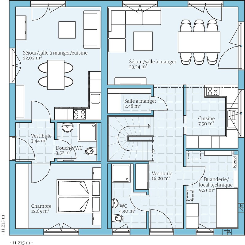 Faites-vous une idée de cette maison à travers les plans d'étage. Nous vous montrerons nos suggestions de planification, qui peuvent bien sûr être modifiées individuellement sur demande.