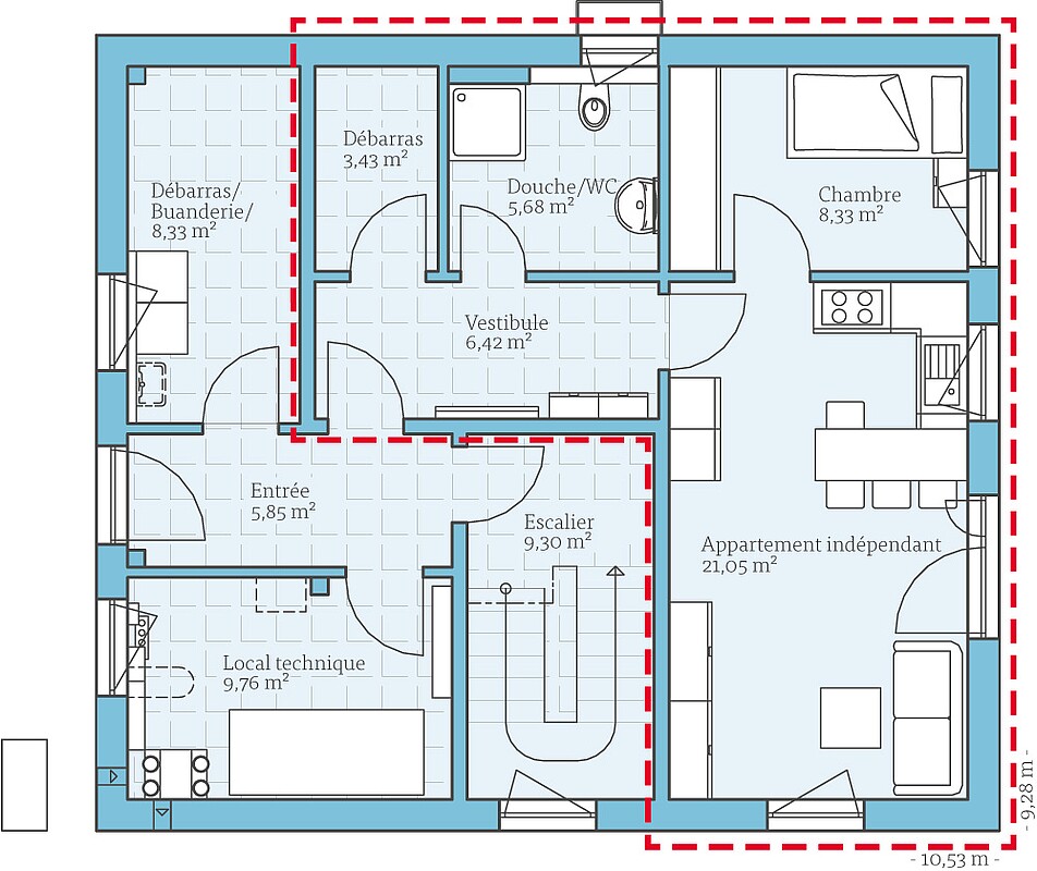 | Surface habitable Appartement indépendant | 44,91 m² |