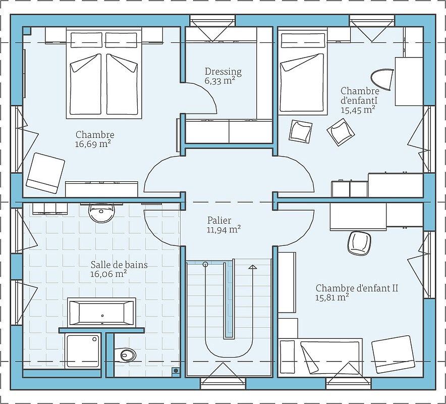 Autre point positif : l'étage supérieur et le grenier du modèle Variant 25-166 dispose d'un bureau/chambre d'amis supplémentaire en raison de la disposition de la buanderie et du local technique au sous-sol.