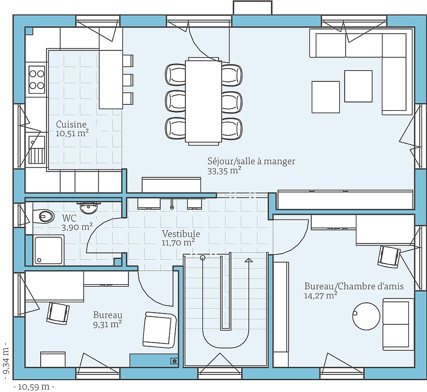 Faites-vous une idée de cette maison à travers les plans d'étage. Nous vous montrerons nos suggestions de planification, qui peuvent bien sûr être modifiées individuellement sur demande.