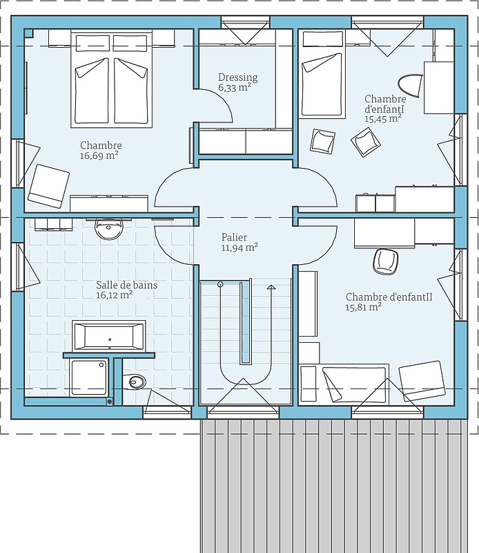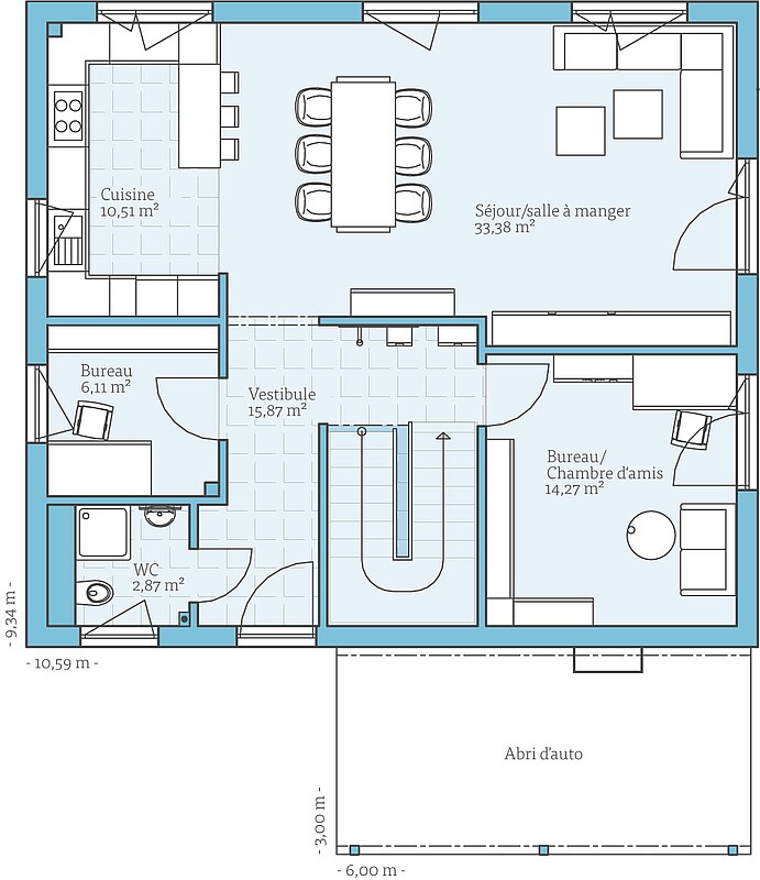 Ce modèle de maison Variant 25-166 convient parfaitement aux personnes qui souhaitent aménager leur maison avec un appartement indépendant tout en préservant leur intimité. Les entrées séparées du rez-de-chaussée et du sous-sol assurent une séparation nette des deux unités d'habitation, et les terrasses des appartements peuvent également être aménagées sur différents côtés de la maison. L'appartement indépendant de 39 m² est doublement avantageux: grâce à la surface habitable supplémentaire apportée à la maison, il augmente la valeur globale du bien immobilier et, lorsqu'il est loué, il permet une contribution précieuse au financement du projet de construction.