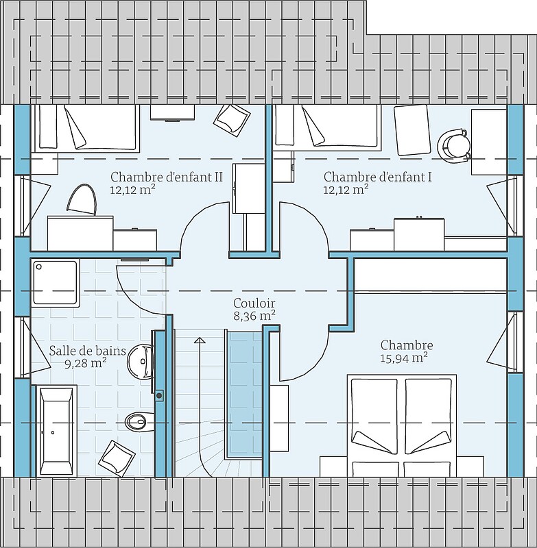 - Avec ses grandes surfaces de fenêtres, le pignon traversier optionnel laisse entrer beaucoup de lumière dans les chambres d'enfants et offre davantage d'espace. Ici aussi, vousavez le choix entre un pignon avec un toit en bâtière classique et un pignon avec un toit plat moderne.