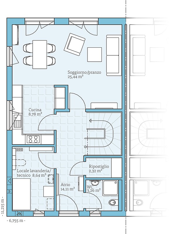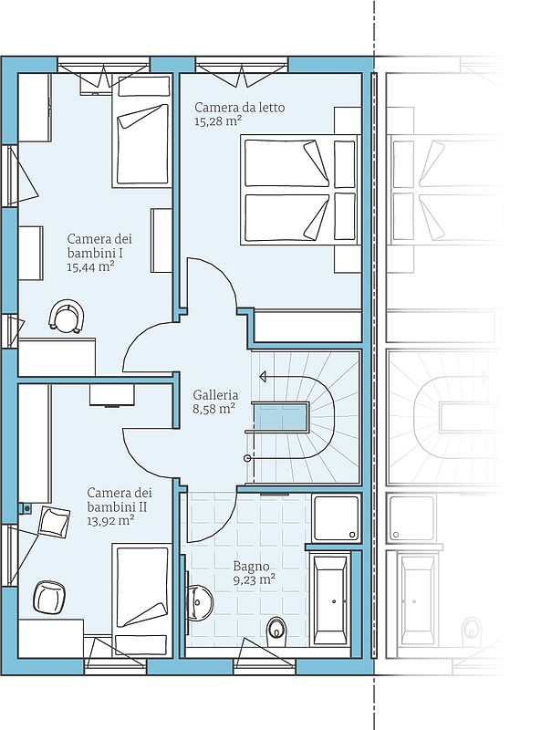 La casa Doppelhaus (bifamiliare) 176 offre una quantità veramente generosa di spazio sui suoi due piani pieni e nella mansarda ulteriormente utilizzabile. La planimetria di 176 m², adatta all'uso quotidiano e alla famiglia, offre una vasta gamma di possibili usi. Oltre ai soggiorni al piano terra e alle camere da letto al piano superiore, ci sono altre stanze disponibili nella mansarda, che possono essere utilizzate, per esempio, come terza camera per bambini, come studio/camera degli ospiti o come locale per gli hobby. C'è anche spazio per un ripostiglio. Opzionalmente, il design della casa può essere esteso con una tettoia per la porta d'ingresso, che protegge la zona d'ingresso dal vento e dalle intemperie.