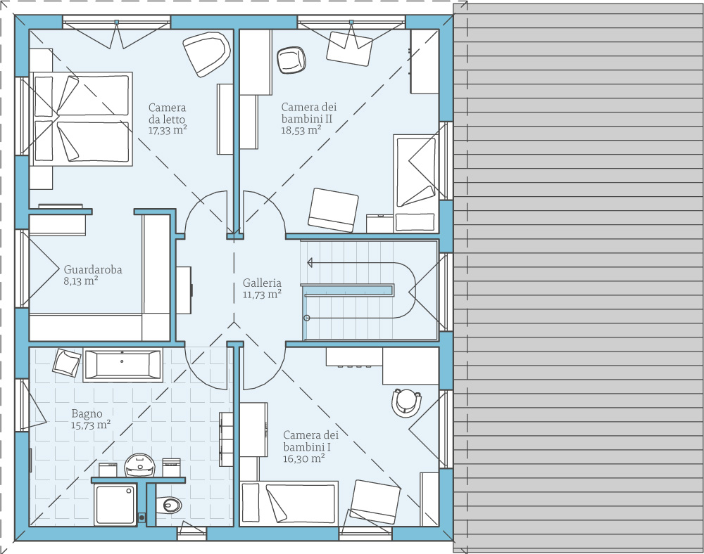 | Forma tetto | Tetto a padiglione, Tetto semplice a falda unica |