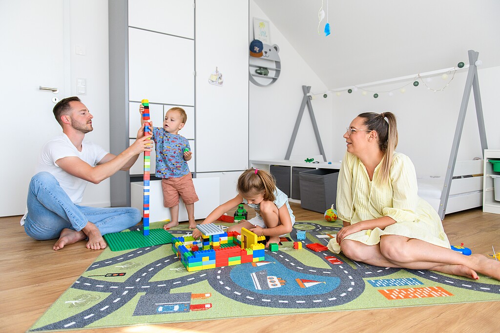 In questa variante di progetto della casa a schiera 118 è stata aumentata l'inclinazione del tetto a due falde ed è stata aggiunta un timpano verso il lato giardino. Si crea così un piano aggiuntivo con spazi di soggiorno e possibilità di utilizzo versatili. Il timpano garantisce la libertà della testa e le sue ampie finestre forniscono molta luce per un'altra stanza dei bambini, una stanza per gli ospiti e lo studio o una stanza per lo sport e gli hobby, oltre a un ulteriore spazio di archiviazione fino alle pendenze del tetto.