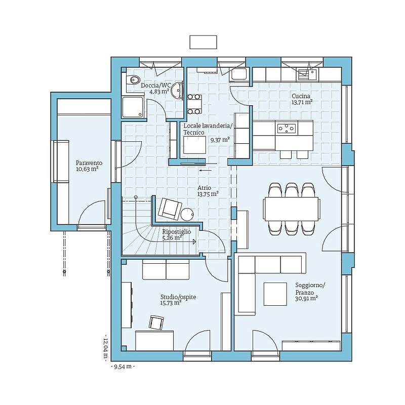 L’open space salotto, cucina e pranzo al piano terra della Variant 192 è il fulcro della vita familiare quotidiana. Qui è il posto giusto per cucinare insieme con amici, giocare con i bambini o sorseggiare un bicchiere di vino per serate piacevoli.