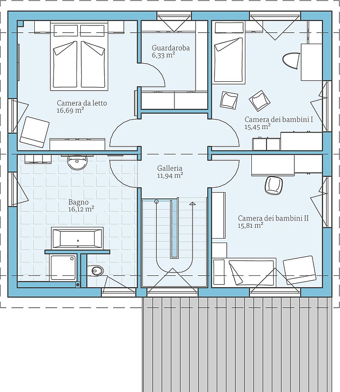 Fatevi un'idea di questa casa con gli esempi di planimetrie. Vi mostriamo le nostre proposte di progettazione, che naturalmente possono essere modificate individualmente su richiesta.